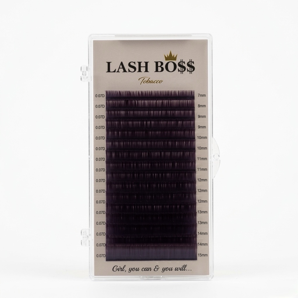 Lash Boss Silk Tobacco Dark Brown eyelash extensions are designed for professional lash artists who want to create soft, natural, and elegant lash sets. The tobacco dark brown color gives a lighter and more natural look compared to classic black lashes, making it perfect for clients who prefer a softer and more natural finish.