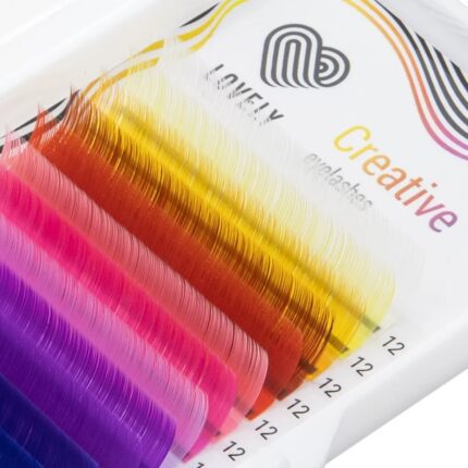 LOVELY colored lashes are a collection of extension fibers in diverse unique shades perfect for artistic fantasy designs or mixing with black lashes for a standout effect. They deliver the same premium quality as classic LOVELY lashes lightweight and long-lasting.